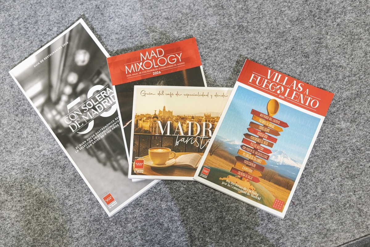 Aunque uno de los momentos más destacados del primer día de FITUR fue la presentación de la nueva guía de Hostelería Madrid, Villas a Fuego Lento. Esta publicación, que puedes descargar de forma online, reúne más de 50 establecimientos de hostelería y propone un recorrido por once villas madrileñas, poniendo en valor los platos de cuchara y otras elaboraciones clásicas. Para más información sobre Villas a Fuego Lento, pincha aquí. También se renovaron las guías de Mad Mixology, Madrid Barista y Con Solera de Madrid.