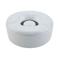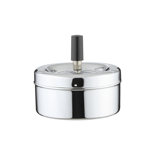 Parecido al cenicero con embudo, en el cenicero de botón los cigarros quedan apagados dentro del recipiente y su cierre hermético evita la salida de olores o materiales. En este caso, el material más utilizado en este tipo de ceniceros es el acero inoxidable. Los ceniceros de botón son un poco más caros; este, por ejemplo, cuesta 16 euros.