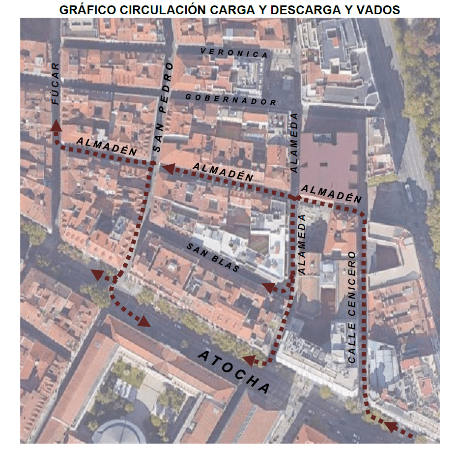 - Calle Cenicero, entre la calle Atocha y la calle Almadén (entre la calle Almadén y calle