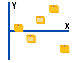 2. En una pizarra, crea un eje de coordenadas grande en el que el Eje X muestra las fases por las que pasa el cliente al visitar el restaurante y en el Eje Y colocarás el disfrute o no de las experiencias. Estas irán de las más positivas (las que disfruta) a las más negativas (las que no disfruta). Ubica cada punto de contacto en el gráfico, utilizando post-its.