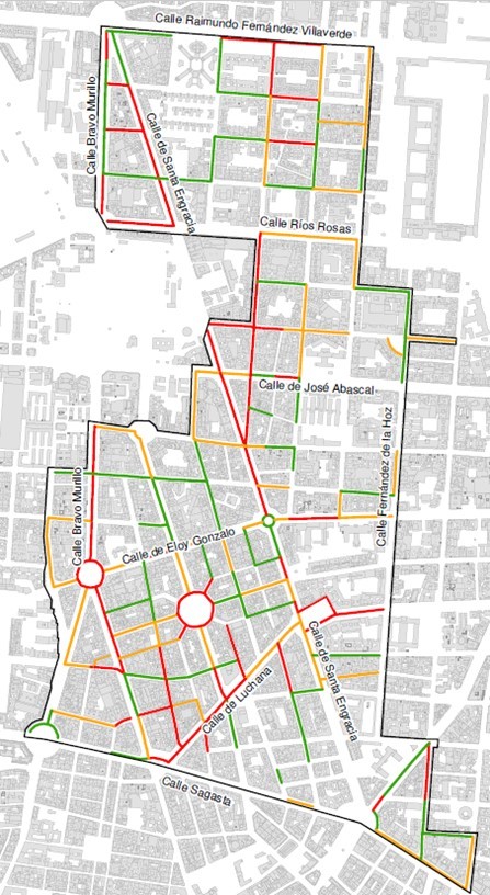 La nueva normativa mantiene el ámbito espacial planteado inicialmente, delimitado por las siguientes calles: Bravo Murillo, Bretón de los Herreros, Carranza, Donoso Cortés, Espronceda, Fernández de la Hoz, García de Paredes, Génova, José Abascal, Santísima Trinidad, Magallanes, Modesto Lafuente, Monte Esquinza, Orfilia, Ponzano, Raimundo Fernández Villaverde, Ríos Rosas, Sagasta, San Bernardo, Santa Engracia, Zurbano, Zurbarán y las glorietas de Bilbao, Ruiz Jiménez, General Álvarez de Castro y la plaza de Alonso Martínez.