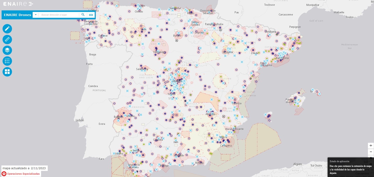 En este enlace encontrarás el mapa oficial del Espacio Aéreo de España (la web pertenece al Ministerio de Fomento), con las posibles restricciones para volar un dron, en función de la finalidad del vuelo (si es comercial o recreativo). Como verás, existen ciertas zonas restringidas, como las zonas ZEPA de protección de aves, o las zonas cercanas a aeródromos y aeropuertos.
