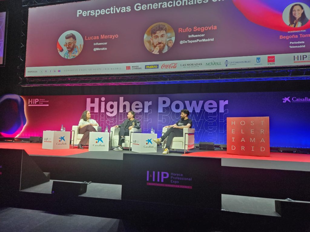 La tercera mesa redonda, Perspectivas Generacionales en Foco, ofreció diversas visiones de la hostelería desde las diferentes generaciones y cómo se alinean las tendencias actuales con el sector. Los ponentes de esta mesa fueron: Merakio, influencer perteneciente a la generación X, actualmente con 410K seguidores en Instagram y 1.5M en Youtube. De la generación de los Milenials, asistió Detapaspormadrid, influencer gastronómico con 210K seguidores en Instagram. Fueron capaces de mostrar la realidad sobre las franjas generacionales, la importancia que asume el papel de las redes sociales e hicieron mucho hincapié en la forma que tenemos los usuarios de consumir redes sociales, cómo afecta / beneficia a la hostelería y cómo ha ido evolucionando. Ambos influencers coincidían en que no son la evolución de la prensa digital, simplemente visitan y consumen los establecimientos de hostelería y después plasman la experiencia gastronómica en el mismo a través de fragmentos de unos 15”- 60” segundos. Aseguraron que el consumidor en redes sociales quiere ver la realidad y ese lado humano de prescriptores. Concluyeron con un tema en el que coinciden los hosteleros, siendo el retorno de las colaboraciones en sus establecimientos, ya que no tiene forma de medirlo. La única forma, en la que coincidían ambos ponentes, es cuando un establecimiento solicita más colaboraciones por la gran influencia de nuevo público a través de la visibilidad de sus vídeos.