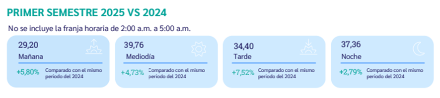 Por franjas horarias, el mediodía continúa siendo el momento de mayor afluencia, aunque la tarde ha experimentado un crecimiento notable. Esto evidencia un cambio en los hábitos de consumo, con una mayor tendencia a comer fuera de casa en horarios menos tradicionales.