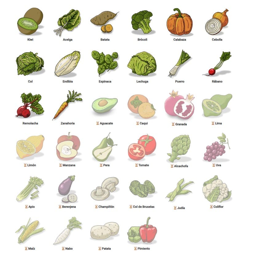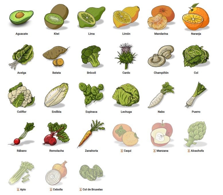 *Los alimentos que están en un tono más claro son los que están entrando o saliendo de temporada.