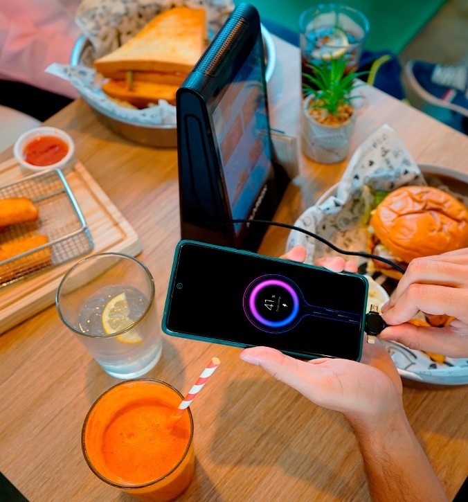 - Cargador para móviles. En los laterales del servilletero hay un cable que se puede utilizar como cargador. Mientras el cliente consume en tu establecimiento, podrá cargar su dispositivo.