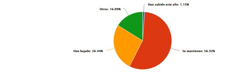 El 94,1% de los hosteleros también reportó una reducción en las reservas con respecto al 2019. Para el 3,30% las reservas se han mantenido y el 2,20% recibieron más reservas. En materia de precios, más de la mitad de los encuestados, un 56,32%, optó por mantenerlos; un 26,44% los bajó y tan solo un 1,15% decidió aumentarlos.