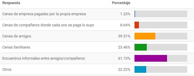 - Las cenas informales entre amigos han sido el 61 % de las que se han celebrado esta navidad y las cenas de empresas han bajado hasta el 1,23 %.