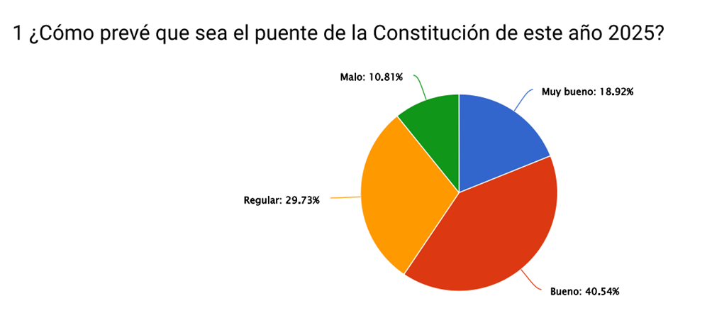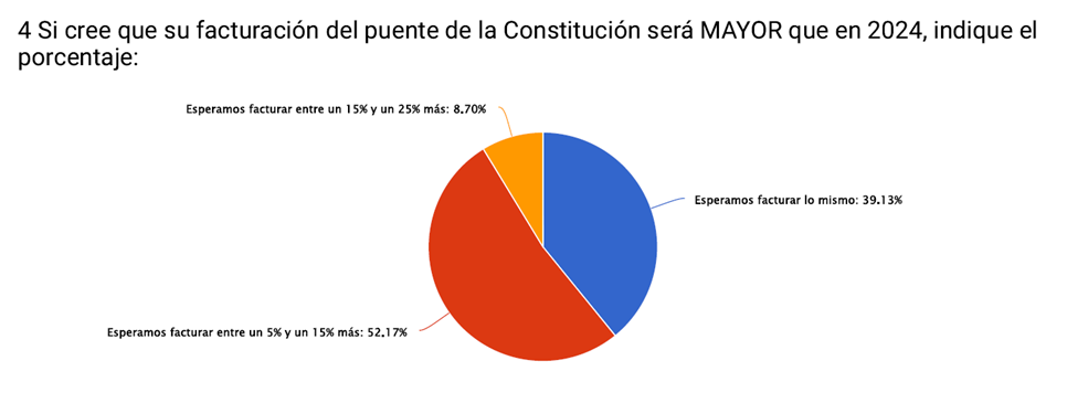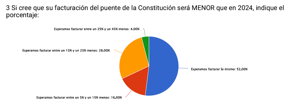 En comparación con el año pasado, el sector se muestra muy dividido: un 32% de los encuestados cree que el Puente de la Constitución 2025 será mejor que el de 2024, otro 32% piensa que será peor, mientras que un 35 % espera resultados similares.