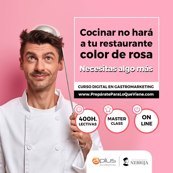 Además, si lo que quieres es estar al día de las redes sociales te recomendamos el curso de gastromarketing de Aplus y la Universidad Nebrija donde no solo tendrán cabida las redes sociales, sino todas las herramientas necesarias para digitalizar un negocio de hostelería ya seas chef, hostelero o estudiante de marketing. Descuento del 20% para asociados de Hostelería Madrid.